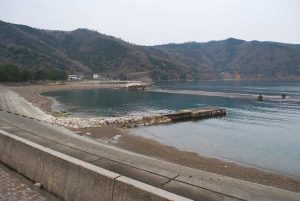 海水の透明度は非常に高く、港内の海底の砂模様まで見えています。